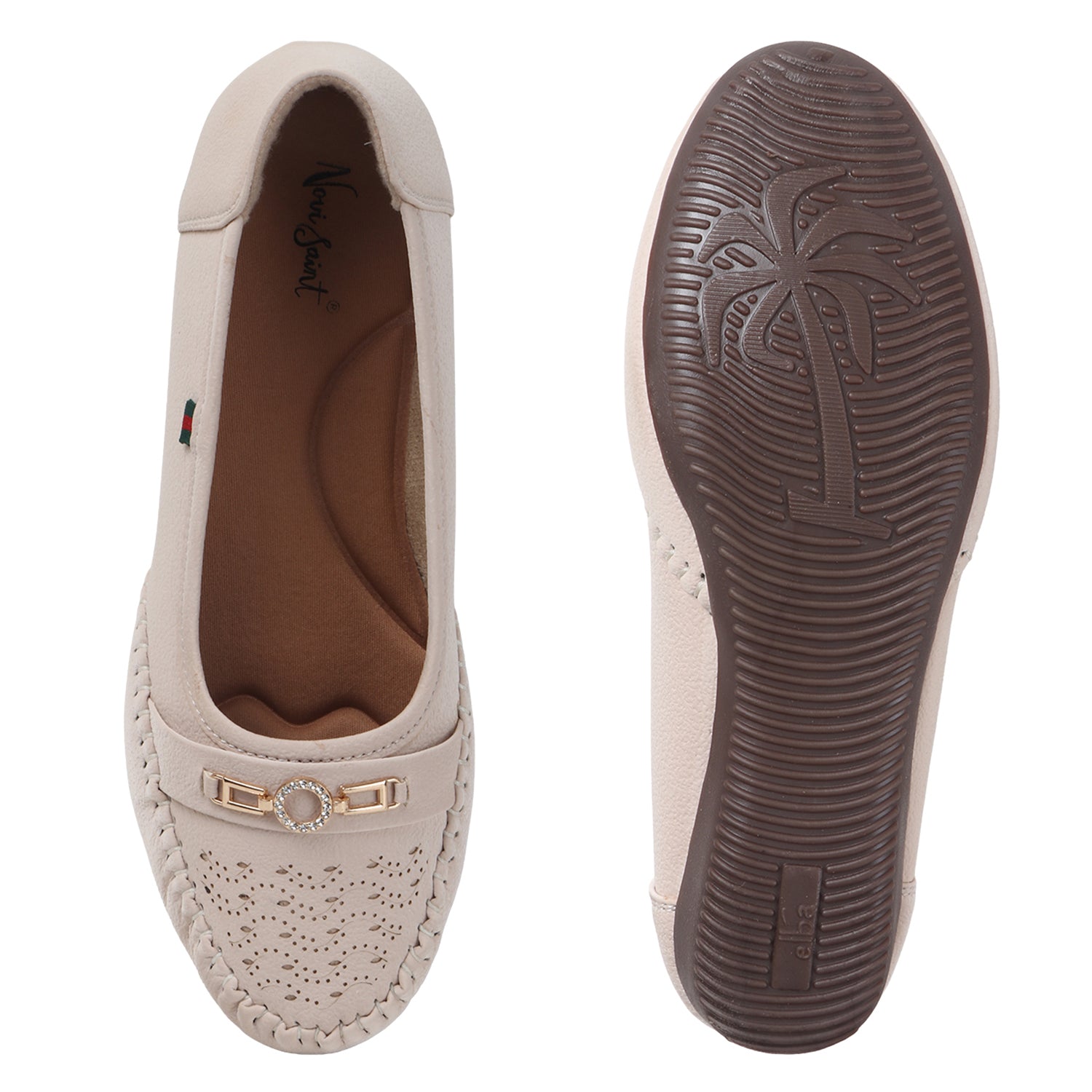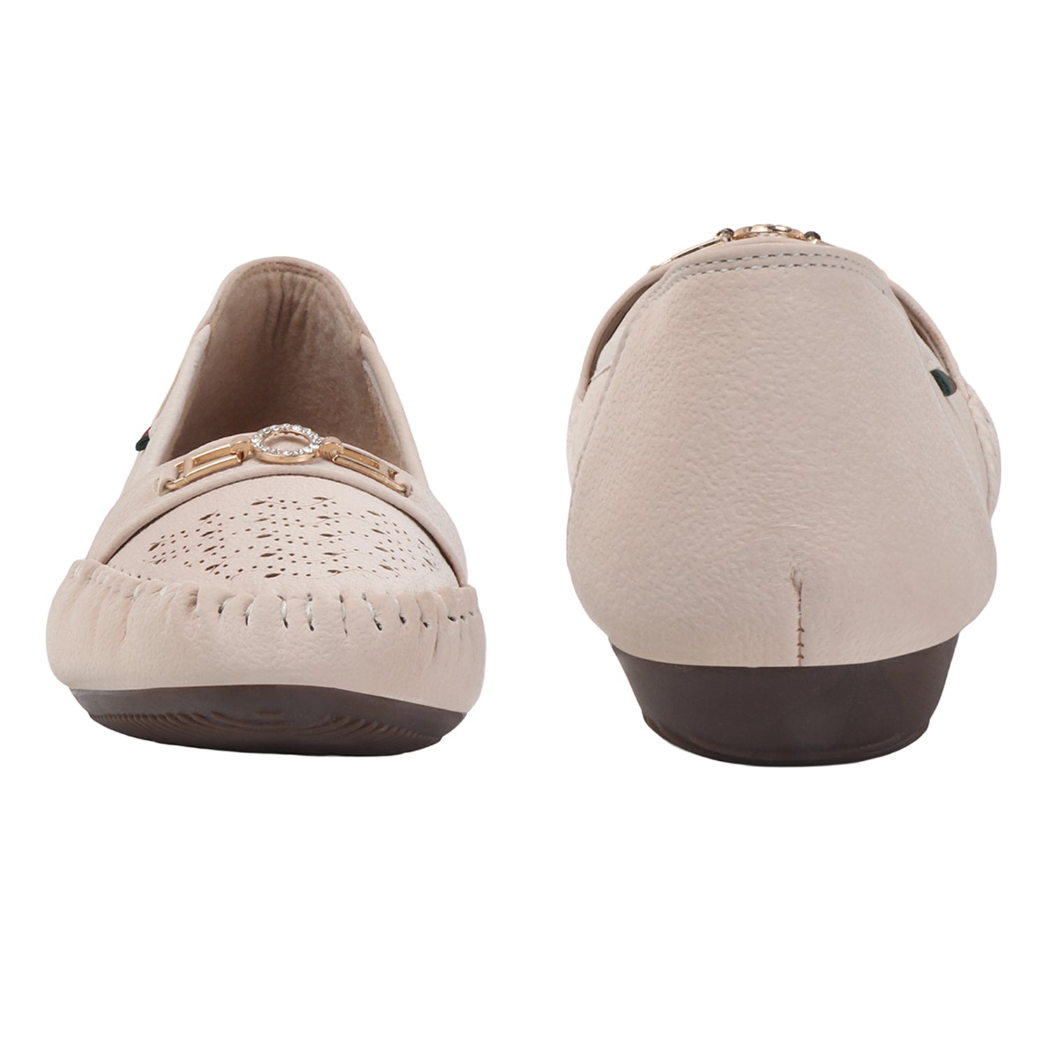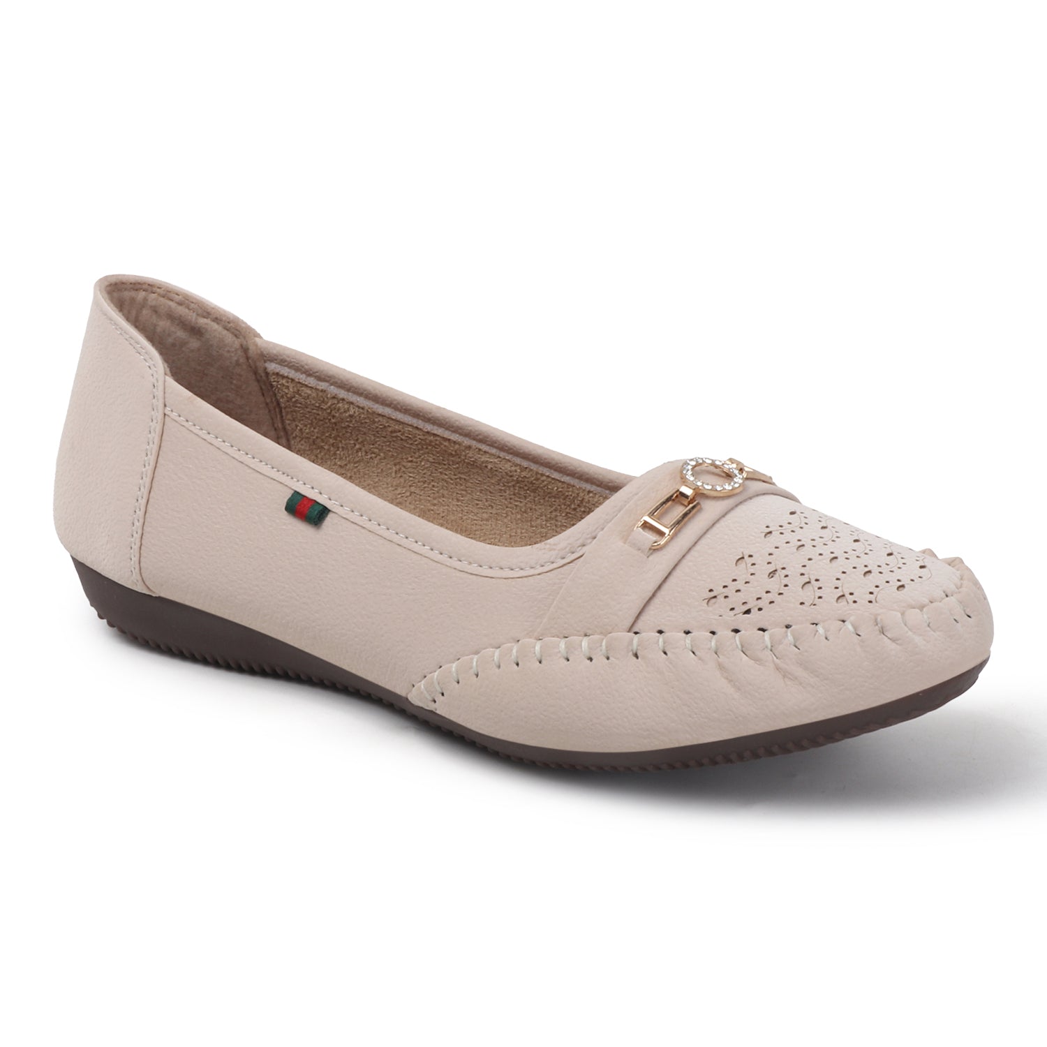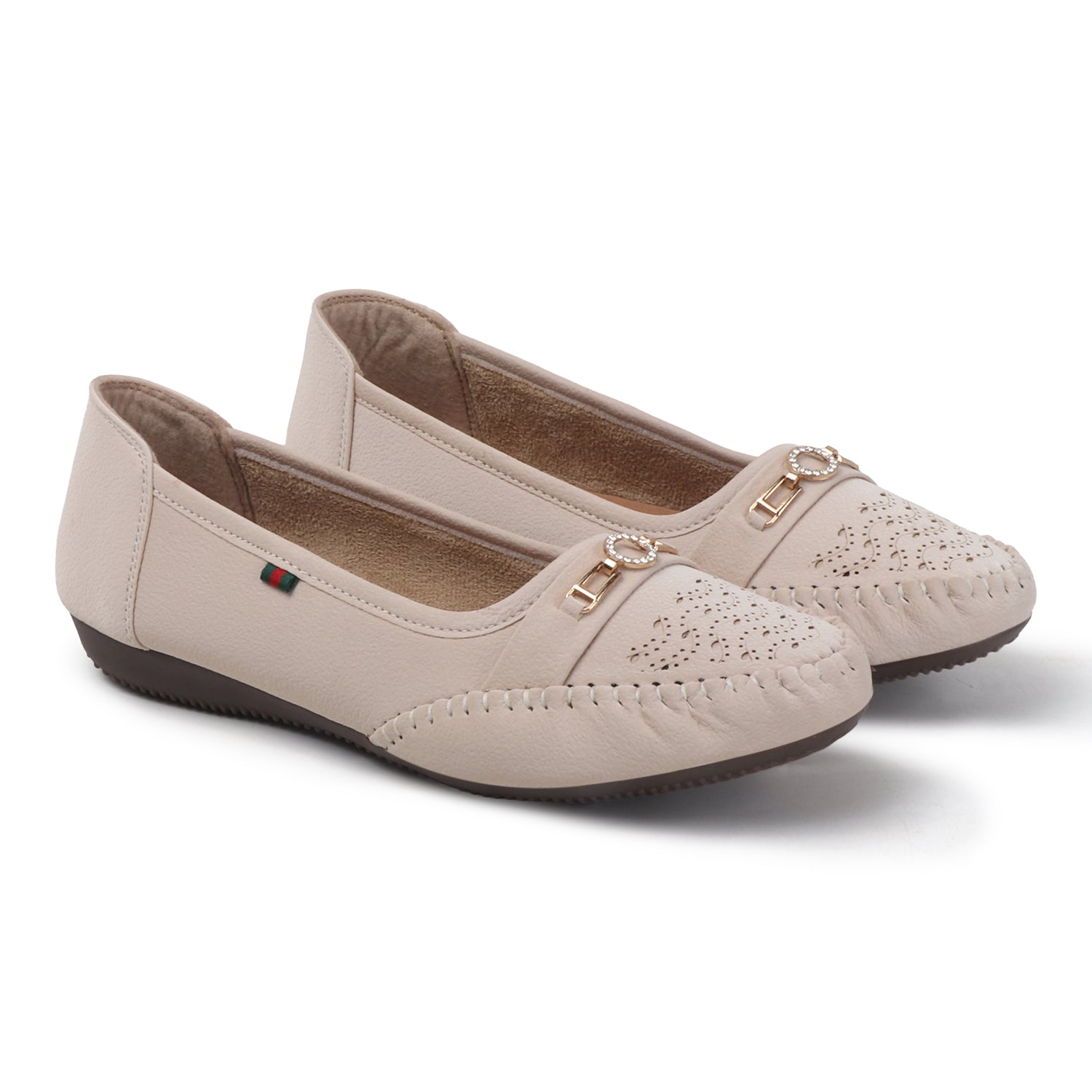 Classic moccasin charm meets everyday comfort. The Bella Moccasin in Cream Beige features intricate stitching, a perforated toe, and a metallic accent — perfect for effortless style from day to night.