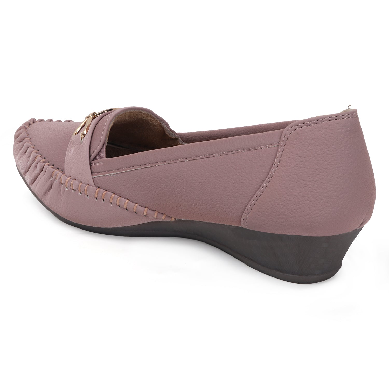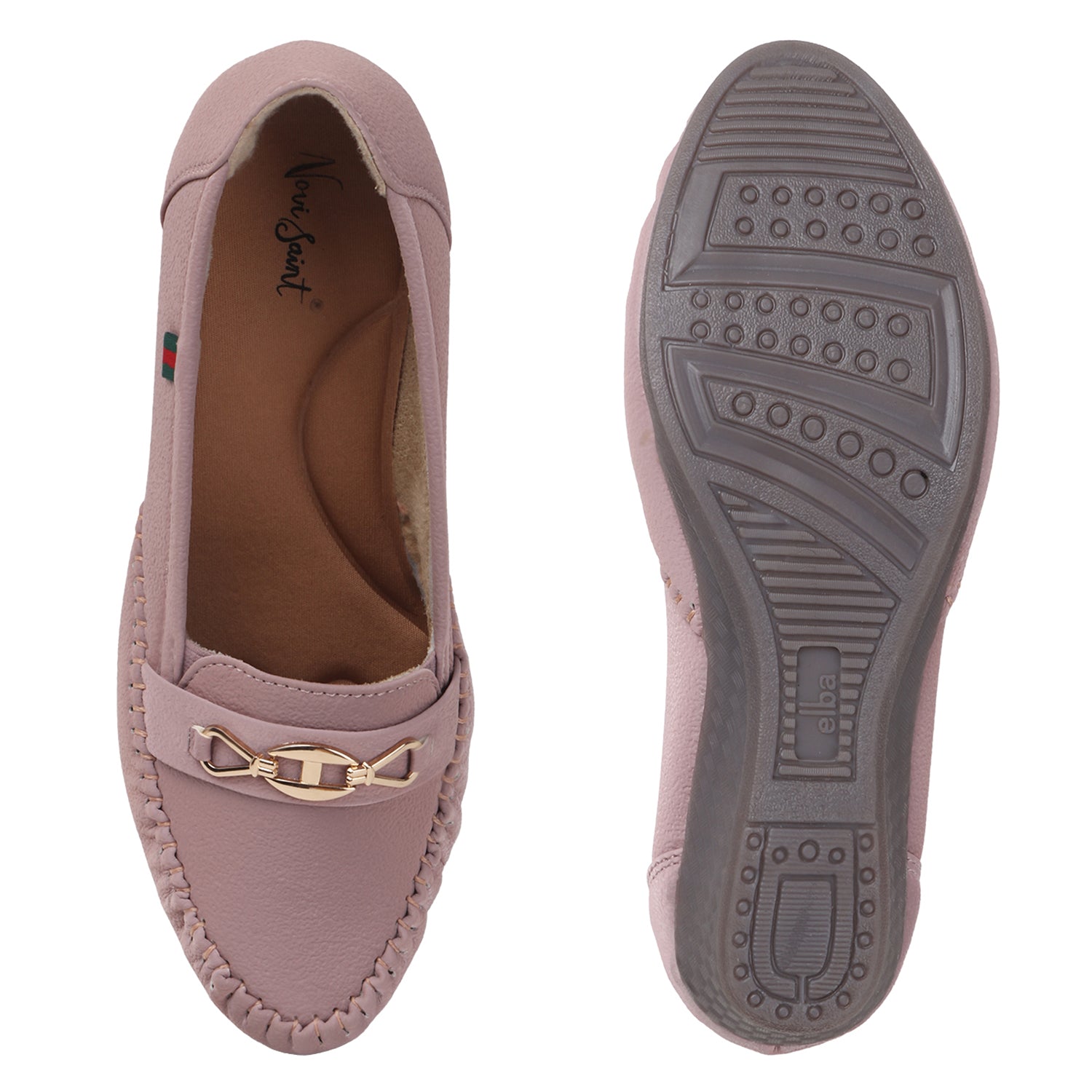 Classic style with a soft touch. Capri in Pastel Mauve combines neat moccasin stitching, a sleek metallic accent, and cushioned comfort for a versatile, feminine look.
