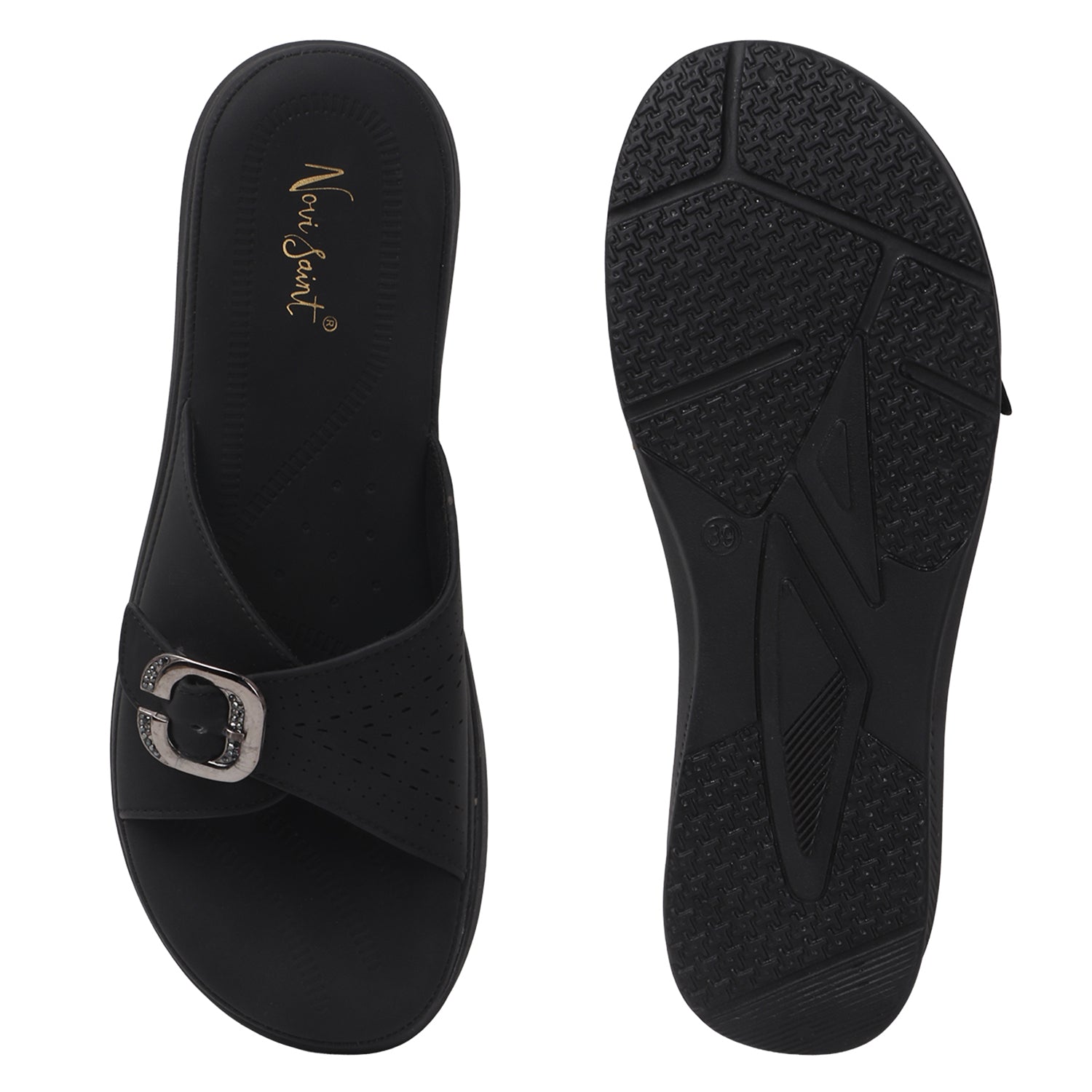 Closure: Slip-on with fixed buckle accent (non-adjustable)