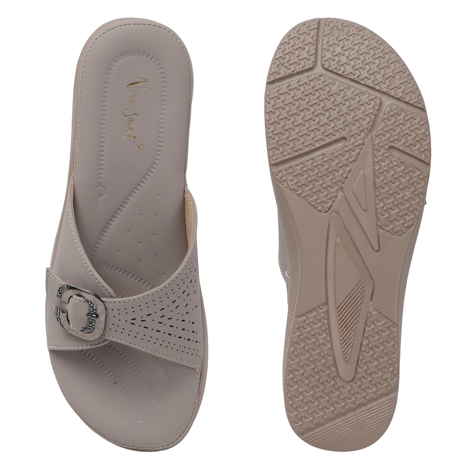 Upper Material: Smooth faux leather with delicate perforations and a decorative sparkle buckle
